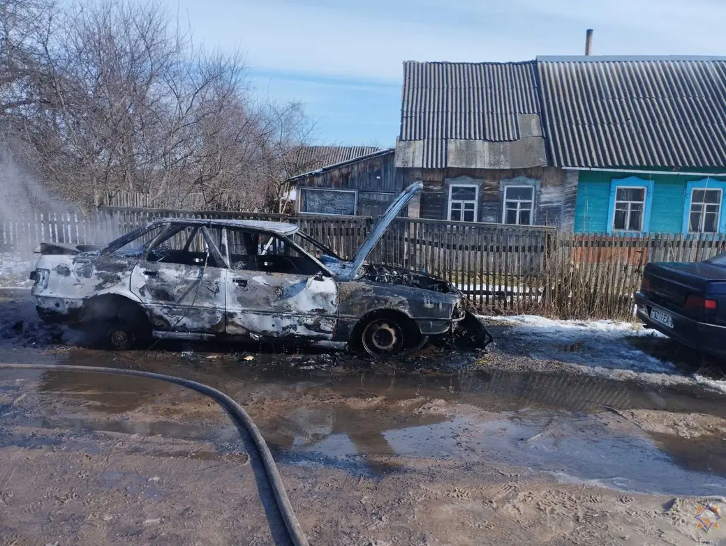 А во втором часу дня подразделения МЧС выехали на сообщение о горящем автомобиле Audi 80 во дворе частного дома по улице Вишневой в деревне Амховая-1 Могилевского района.