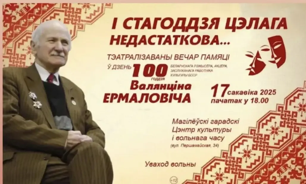 17 марта исполняется 100 лет со дня рождения Валентина Ермоловича – белорусского актера и режиссера. Он способствовал возрождению шести народных театров, в том числе в Белыничах, Краснополье и Могилеве.