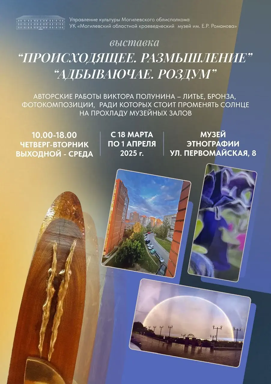 «Происходящее. Размышление» – так называется выставочный проект, который знакомит с творчеством могилевского скульптора Виктора Полунина. В составе экспозиции литье, бронза, фотокомпозиции.