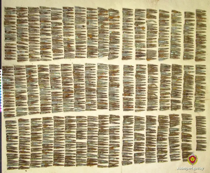 Согласно выводам экспертов, из числа всех представленных патронов более тысячи девятисот являются военными патронами 7,62х54R к авиационному советскому пулемету «Шкас» (Шпитального-Комарицкого авиационный скорострельный), более двух тысяч – немецкими патронами 7,92х57 к пехотным винтовкам системы «Маuser». Еще два объекта являются французскими винтовочными патронами 7,5х54 MAS к винтовкам «Сент-Этьен» и ручным пулеметам «Шательро».