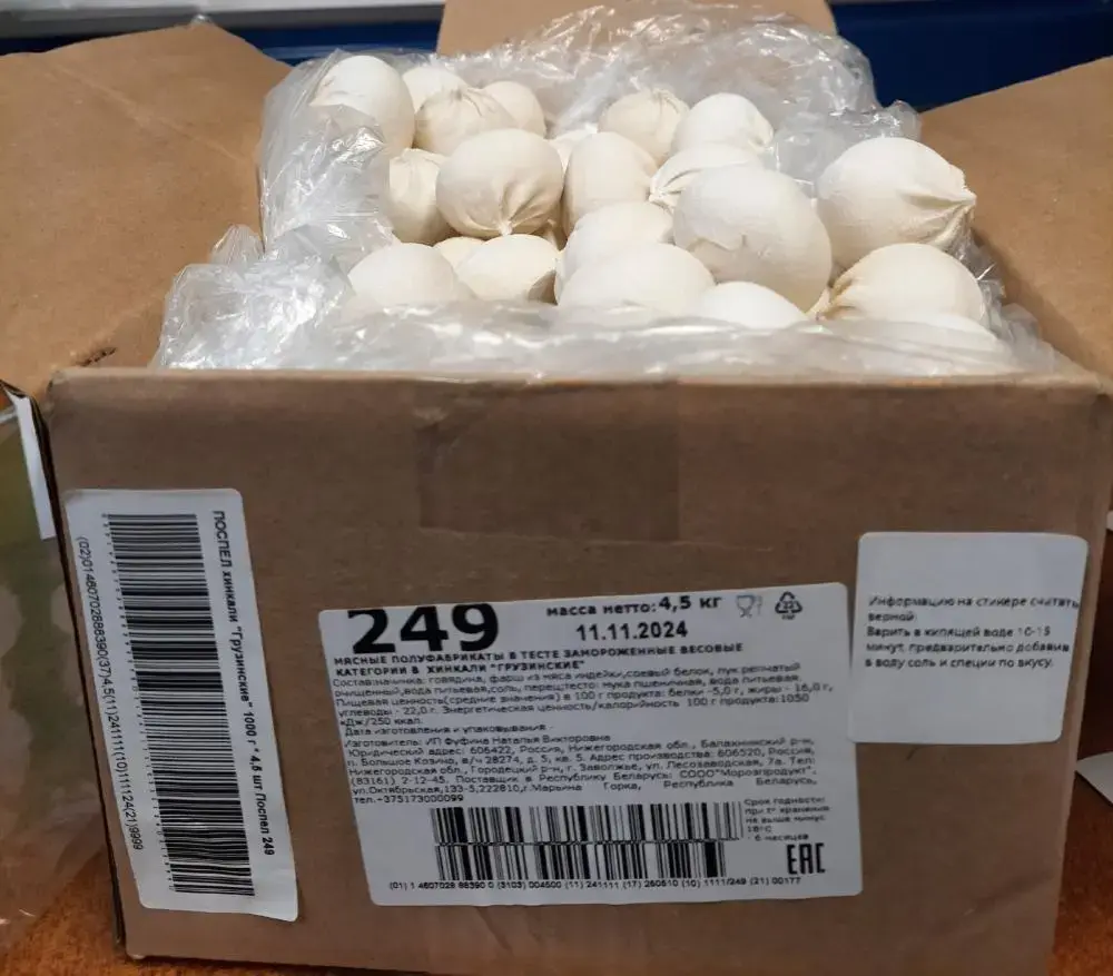По этому же микробиологическому показателю не прошли испытания и развесные мясные полуфабрикаты хинкали «Грузинские», произведенные в Нижегородской области РФ. В них также нашли недопустимые патогенные микроорганизмы, в том числе сальмонелл.