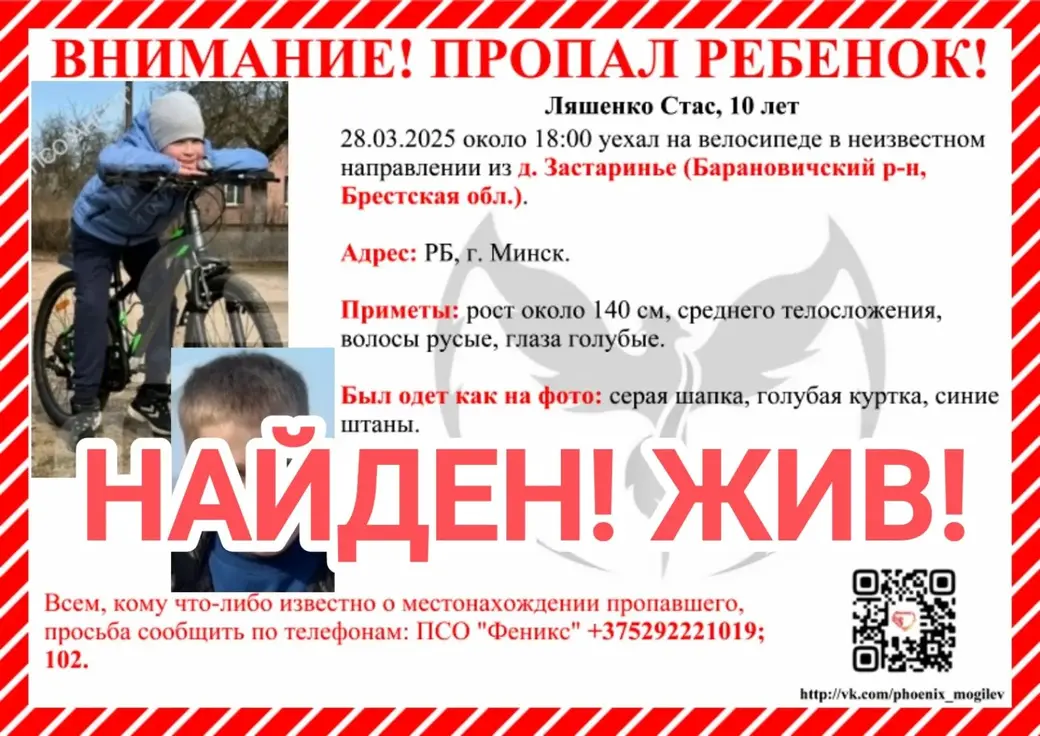 Спасибо каждому, кто смог поехать на поиски и найти Стаса! Спасибо каждому, кто всю ночь и все утро делал репосты-ориентировки, чтобы как можно больше людей узнали о пропавшем мальчике!