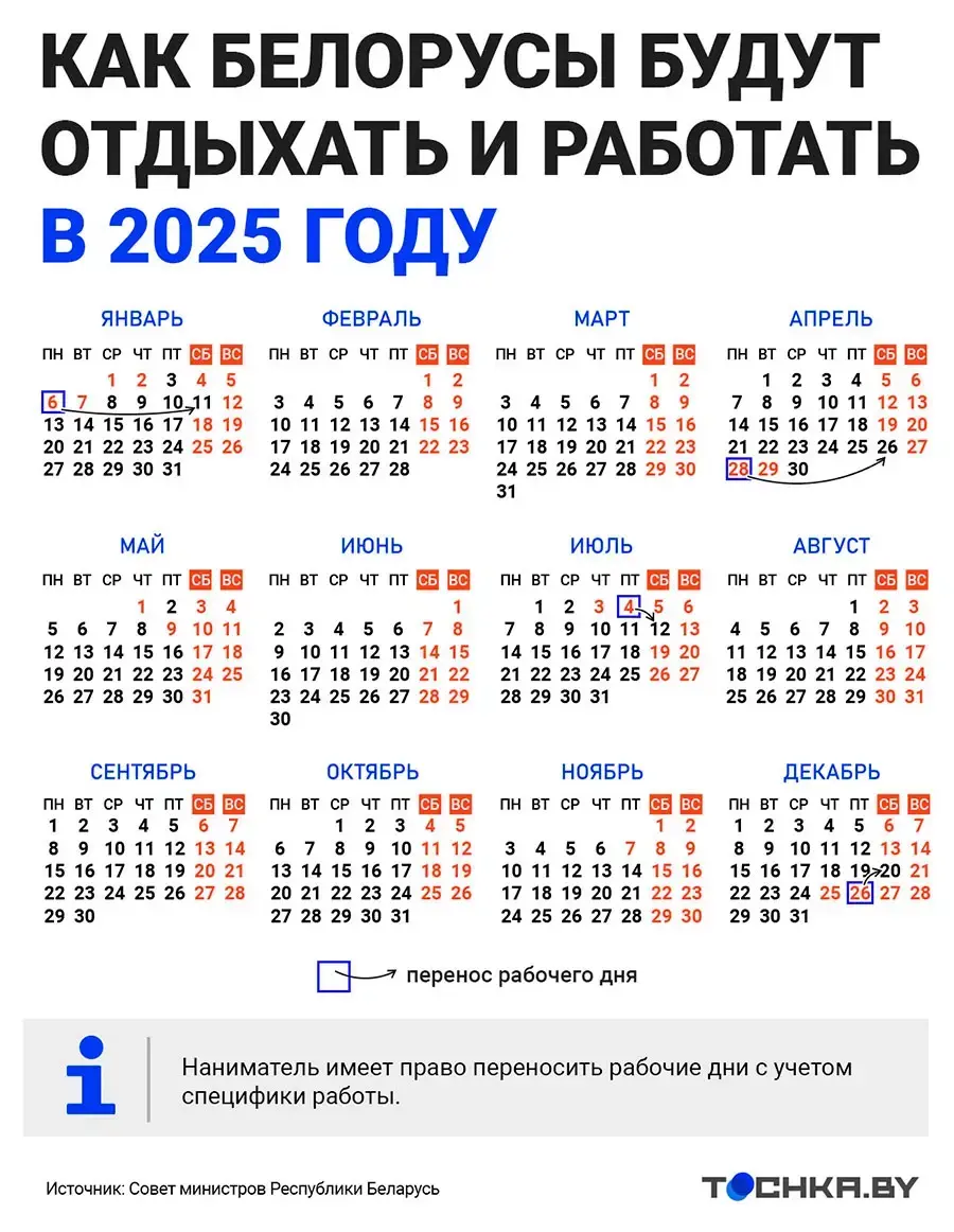 Так, по графику, который утвердил Совмин, рабочий день 28 апреля (понедельник) будет отработан заранее – в субботу, 26 апреля.