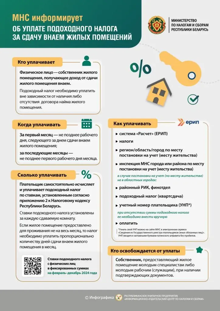 ЭкономикаЧто нужно знать про подоходный налог белорусам, сдающим в аренду жилье? Инфографика МНС1380 03.04.2025 Источник: МНС РБ, фото на титуле: ru.freepik.com Пресс-служба ответила на часто задаваемые вопросы при сдаче внаём жилых помещений физическими лицами – читайте в инфографике.