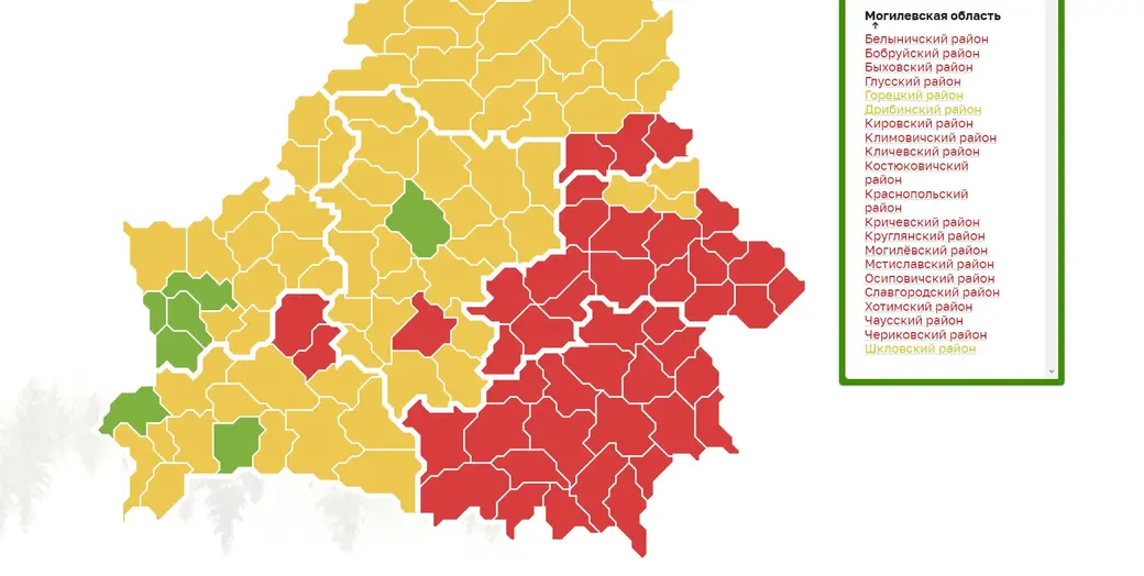 По данным интерактивной карты Министерства лесного хозяйств на утро 25 апреля, запреты на посещение лесов в Могилевской области введены в 18 районах Могилевщины, в том числе Могилевском и Бобруйском. В остальных трех (Горецкий, Дрибинский и Шкловский районы) – действуют ограничения.