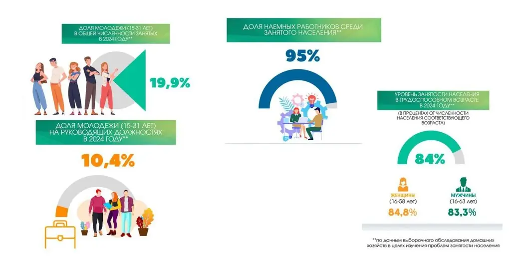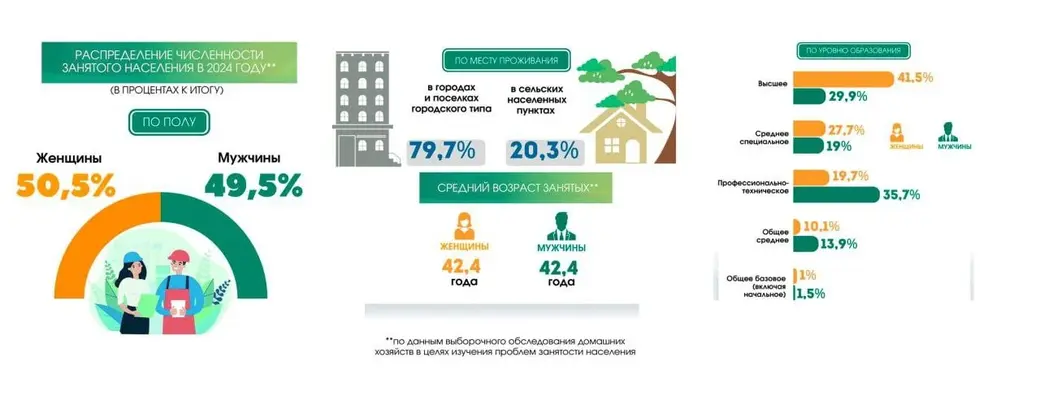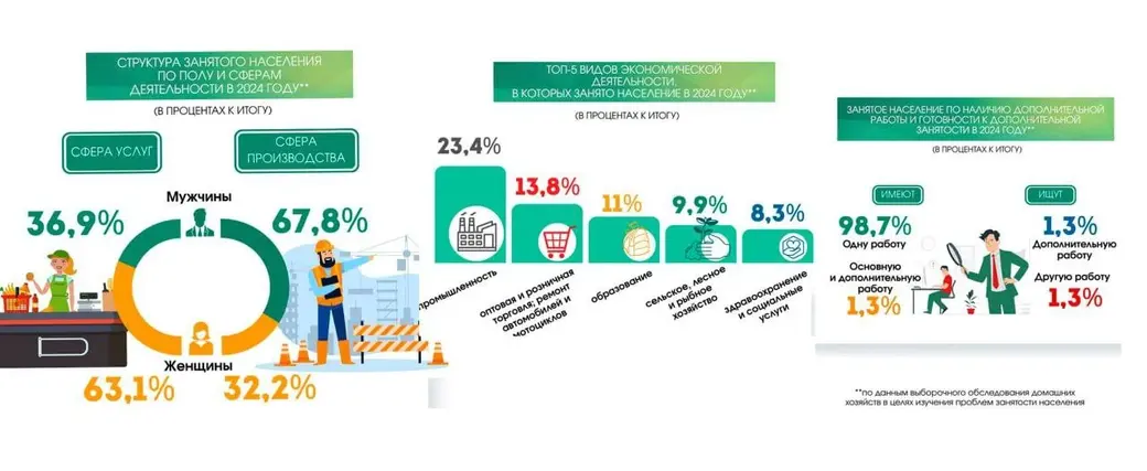 Структура занятого населения по полу и сферам деятельности в 2024 году