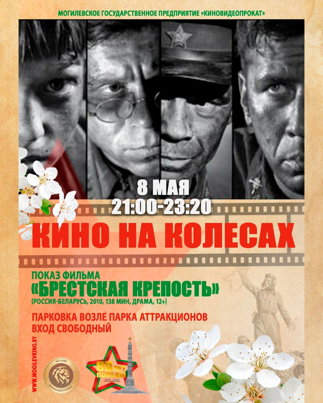 На парковке у парка аттракционов в Могилеве (рядом с ДК области) покажут художественный фильм «Брестская крепость» (Беларусь, Россия, 2010 г.). Сеанс состоится 8 мая. Начало в 21.00. Вход свободный.