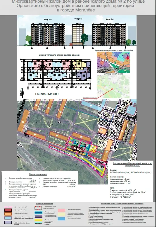 Для размещения жилого дома и его инженерно-транспортной инфраструктуры планируется демонтаж существующего здания продуктового магазина по адресу ул. Орловского 17 А. Проектируемый жилой дом планируется разместить вдоль существующего второстепенного проезда, дублирующего ул. Орловского. Также проектом предусматривается расширение части существующего проезда (к дому по ул. Якубовского, 17) до 6 м.