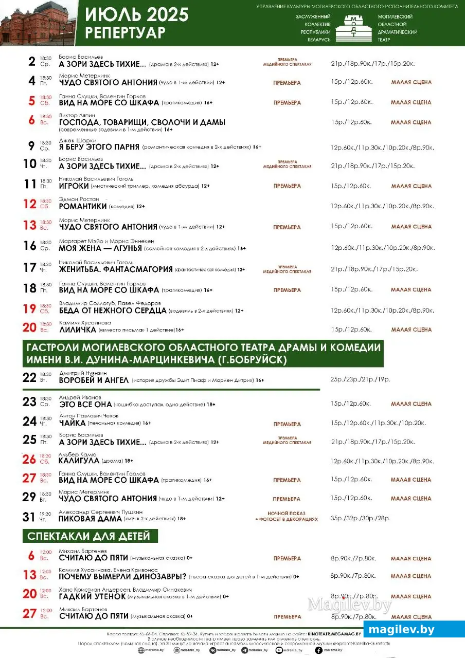 Ниже подробная афиша июня. На протяжении месяца в ней возможны изменения. Справка по телефону: 80222-65-52-34.
