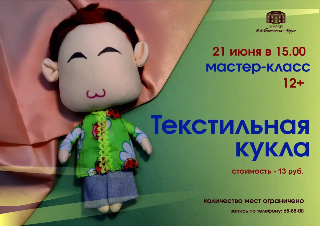 Урок мастерства пройдет в могилевском художественном музее имени Витольда Бялыницкого-Бирули. В его рамках опытный мастер научит создавать своими руками текстильную куклу.
