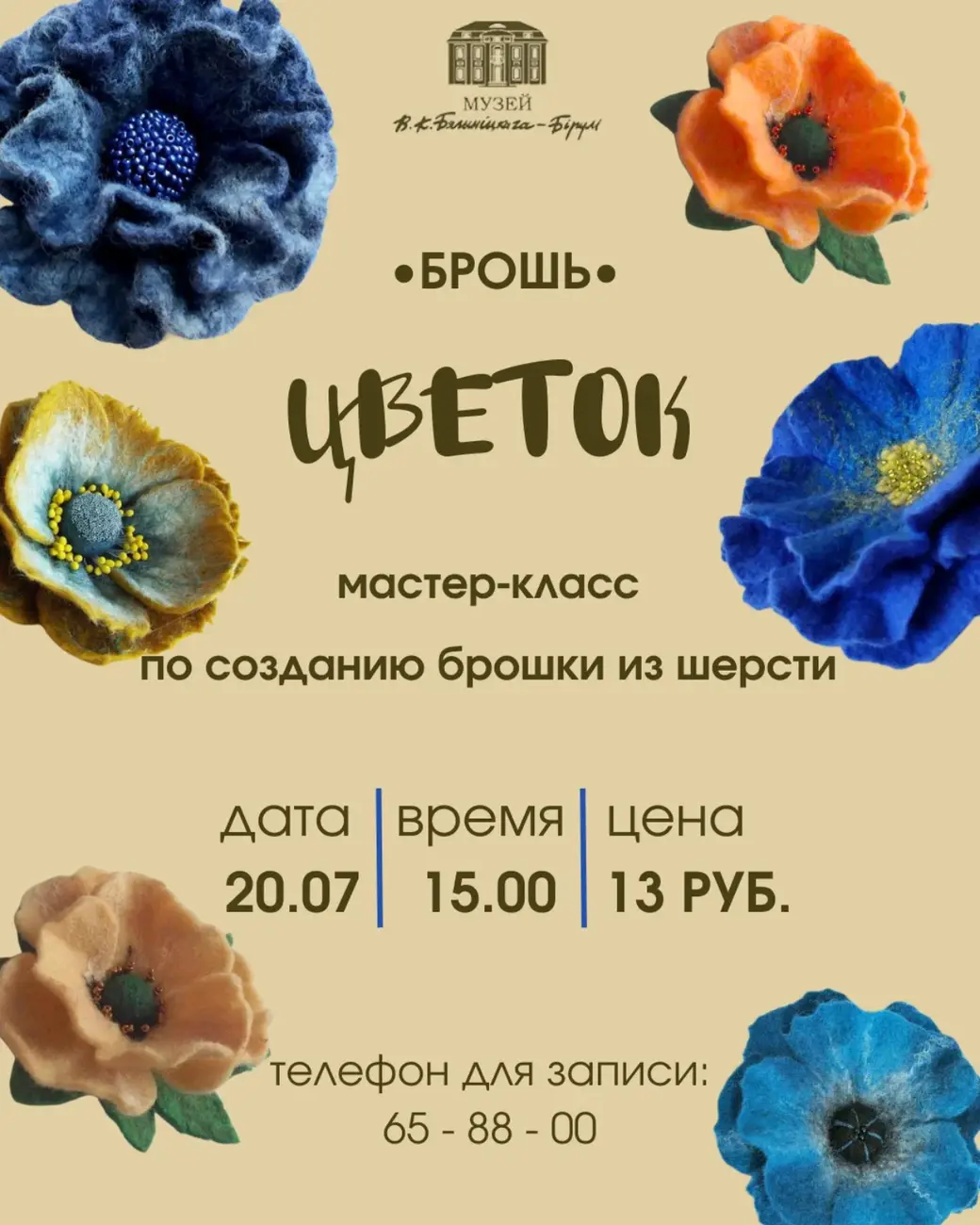 Урок мастерства пройдет в могилевском художественном музее имени Витольда Бялыницкого-Бирули. В его рамках опытный мастер научит создавать своими руками брошь из шерсти методом мокрого валяния.