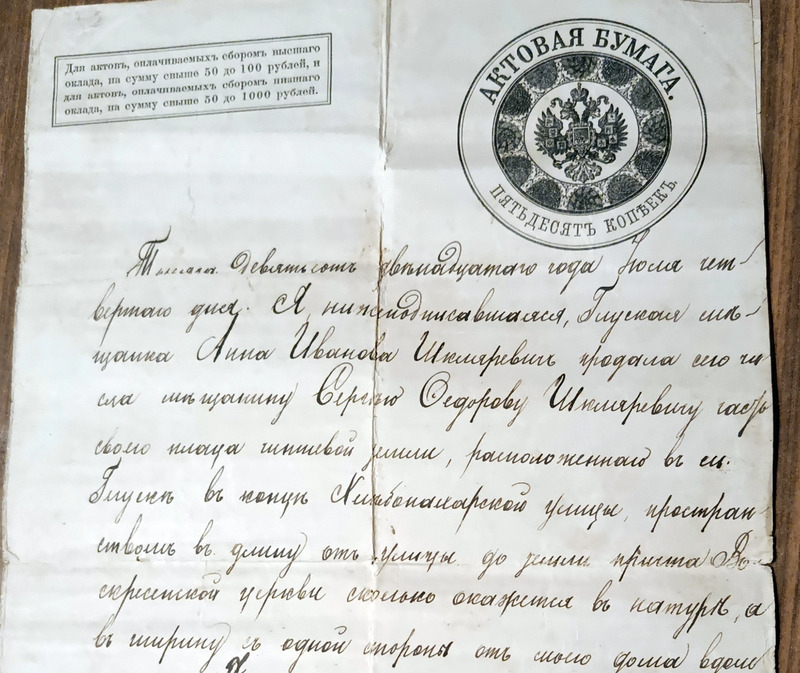 На первый взгляд, сложно поверить, что перед нами документ начала XX века, сохранившийся в семье глусчанина Дмитрия Пароховника. Что же это за документ, написанный на гербовой бумаге? Это – купчая, договор между двумя мещанами о продаже земельного участка. Прадед Дмитрия Пароховника как раз и был покупателем земли.