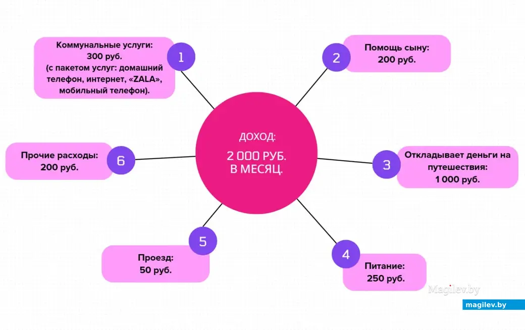 – Зато сейчас я могу нормально жить, немного помогаю сыну и откладываю на поездки до 1000 руб. в месяц, – говорит собеседница. – Я очень люблю путешествовать, и раньше позволяла себе какие-то поездки, но для этого нужно было очень «туго затягивать пояс». За этот год посмотрела Беларусь, побывала, в Питере, в Москве, скоро поеду Казань посмотреть.