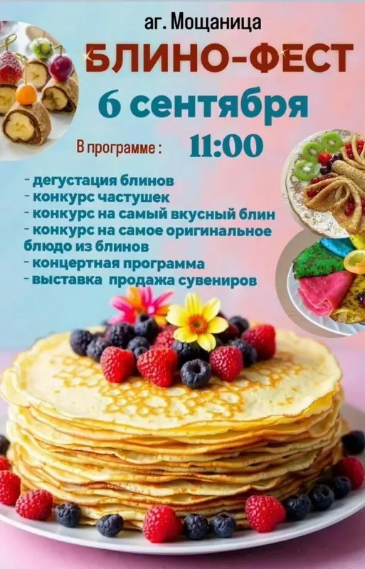Именно поэтому блины и сегодня в будничном и праздничном меню каждой белорусской семьи. А в агрогородке Мощаница Белыничского района блинам посвятили фест, который пройдет 6 сентября.