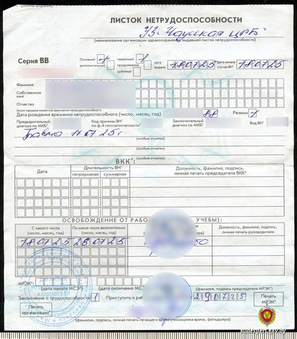 В июле оператор машинного доения получила травму, с которой находилась на больничном. Однако предоставленный по месту работы листок нетрудоспособности вызвал подозрения, организация обратилась в милицию и документ направили в Могилевский межрайонный отдел ГКСЭ на судебную экспертизу.
