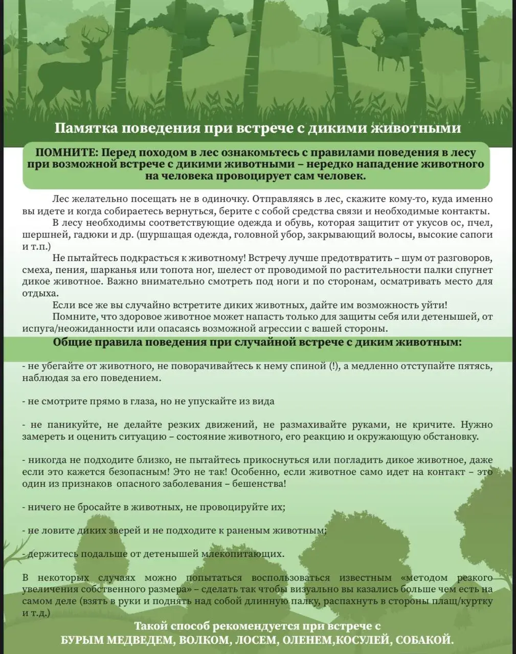 Вместе с тем, встреча человека и крупного животного всегда таит в себе потенциальную опасность. Поэтому стоит придерживаться элементарных правил поведения при встрече с диким животным.