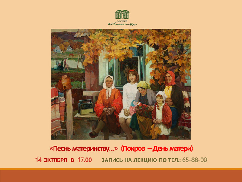 Лекция «Песнь Материнству…» состоится в художественном музее Витольда Бялыницкого-Бирули Могилева 14 октября. Начало в 17.00. Справка по тел.: 80222-65-88-00.