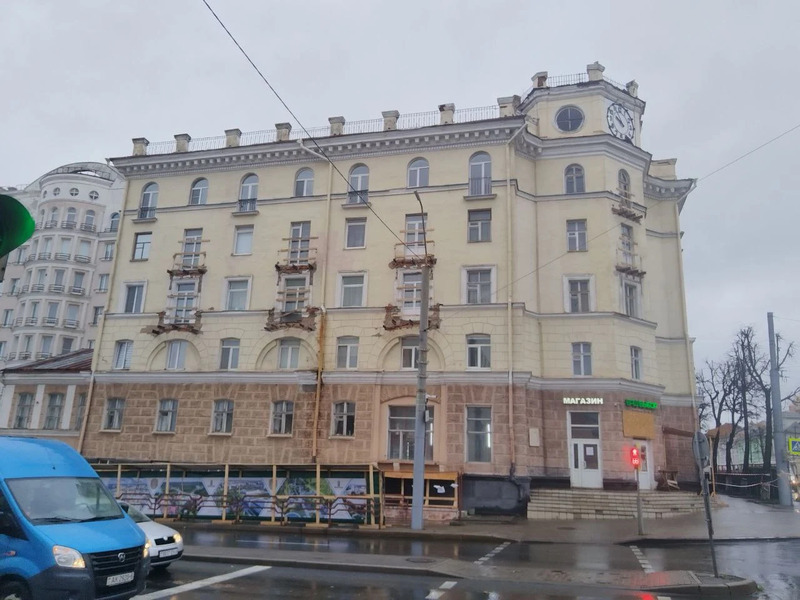 Построили дом еще в 1930-х, но во время Великой Отечественной войны он очень пострадал. Работы по восстановлению завершили в 1947 году. Здание стало украшением центральной улицы города и его Театральной площади.