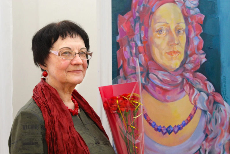 Свою очередную персональную выставку Галина Кононова назвала «Портрет-автопортрет».31 октября 2025 года. Могилев. Могилевский художественный музей имени Павла Масленикова. Галина Кононова и автопортрет.