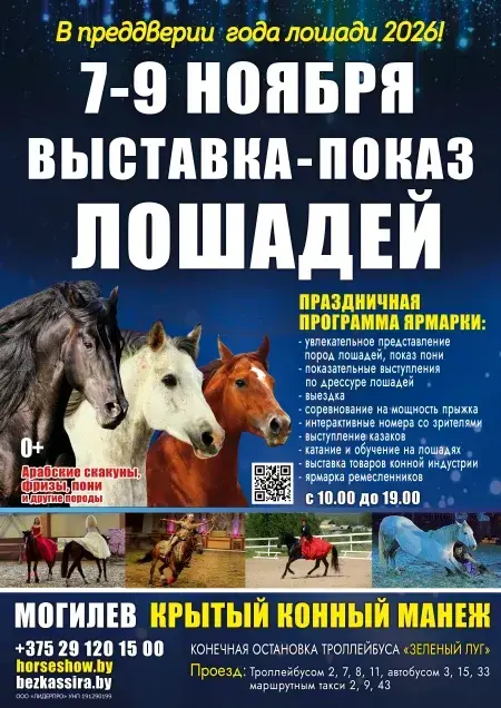На выставке-показе породистых лошадей «Осень-2025» будет представлено около полусотни лошадей: изящные арабские скакуны, вороные фризы, тяжеловозы, пони, ирландские тинкеры и другие. В программе – шоу с театрализованными акробатическими номерами.
