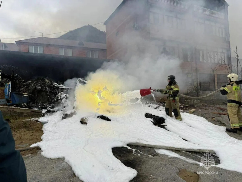Вертолет перевозил сотрудников Кизлярского электромеханического завода и рухнул на территории поселка Ачи-Су на строящийся гостевой дом, где в этот момент никого не было. На месте ЧП начался пожар. Спасатели локализовали его на площади 80 квадратных метров.