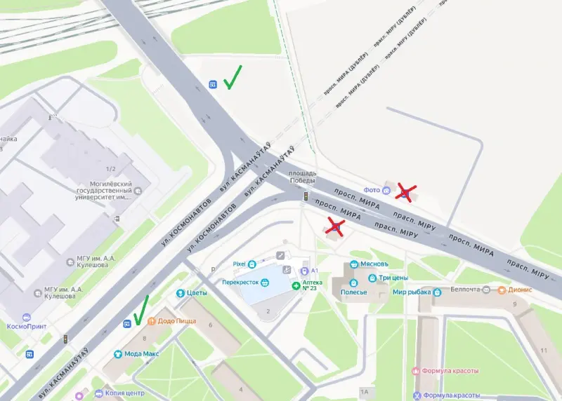 Остановка «из города» смещена в сторону ул. Якубовского, за пешеходный переход.