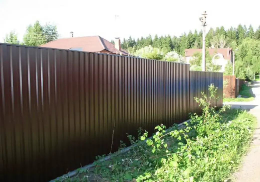 Профнастил остаётся самым популярным бюджетным материалом. Он лёгкий, быстро монтируется и обеспечивает неплохую стойкость к атмосферным воздействиям.