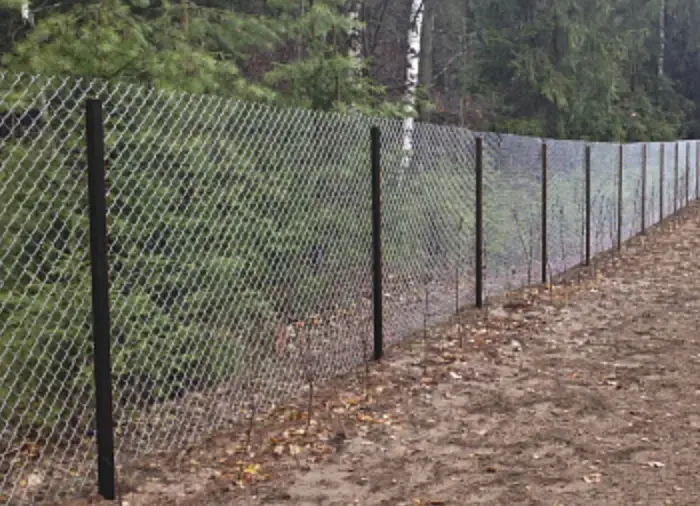 Рабица популярна в сельской местности. Она недорогая, подходит для ограждения соток и гектаров, но не обеспечивает приватность.