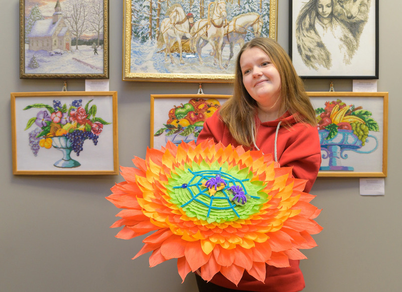 Например, Ирина Плетинская представила картины, вышитые крестом. Удивительно, что с рождения у Ирины проблемы с руками, при этом она с 15 лет увлекается творчеством.