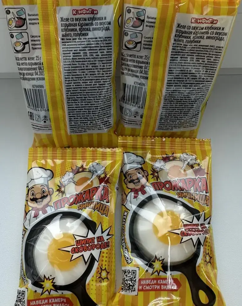 - желе со вкусом клубники и взрывной карамели со вкусом клубники, яблока, винограда, манго, голубики торговой марки «Конфитой»
