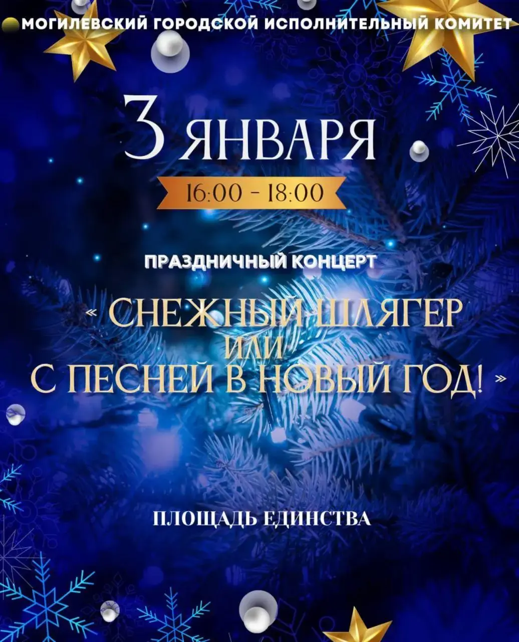 Сидеть всю новогоднюю ночь у телевизора – не ваш вариант? Тогда айда на елку! В новогоднюю ночь в Могилеве пройдет четырехчасовая концертная программа «В ритме Нового года» – будут и танцы, и песни, и конкурсы, и викторины, и поздравления, и подарки. Выступят группа «Байсити» и Евгений Курчича.