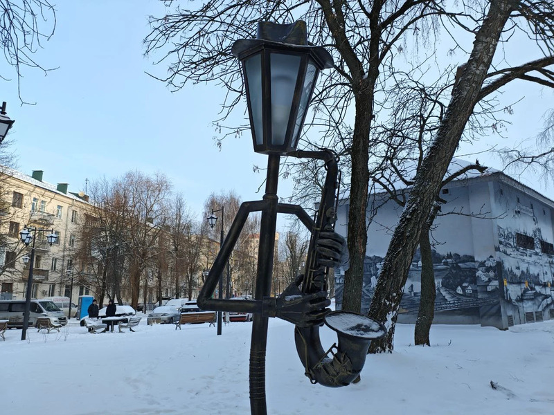 Трубач, саксофонист и виолончелист: фонари-музыканты на Ленинской в Могилеве. Фотофакт