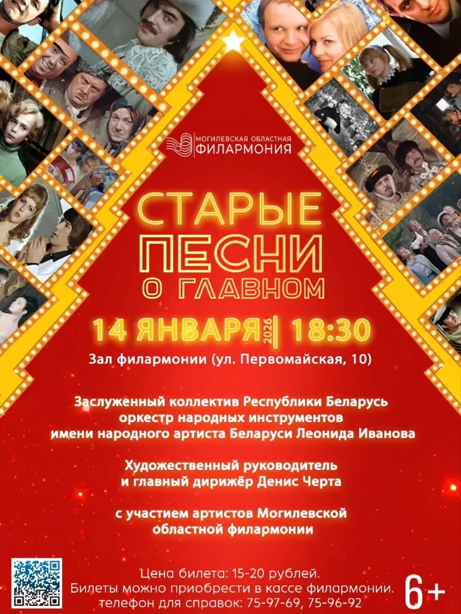 Концерт «Старые песни о главном» состоится 14 января в Могилевской областной филармонии. Начало в 18.30. Цена билета: 15-20 руб.