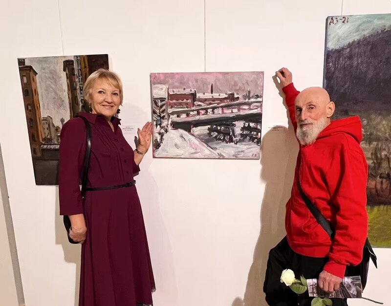 Одним из авторов выставки является наш бывший земляк Борис Борщ, его творчество представлено 20 картинами. В основном это пейзажи и портреты.Август 2025 года, Могилев. Борис Борщ на улице Ленинской.