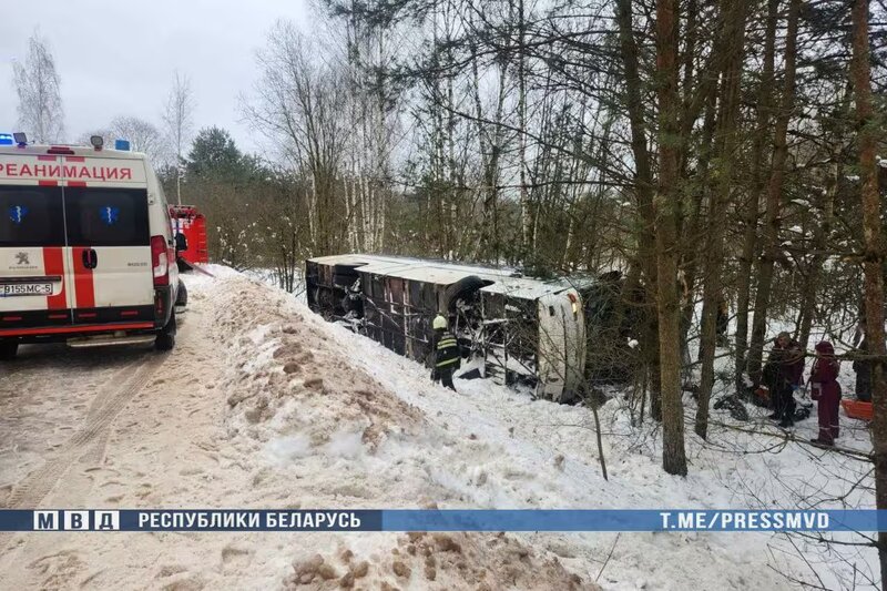 Днем,14 февраля, в Логойском районе произошло дорожно-транспортное происшествие с участием автобуса DAF. По предварительной информации, водитель не справился с управлением на закруглении дороги, съехал в кювет и опрокинулся, сообщили в МВД Беларуси.
