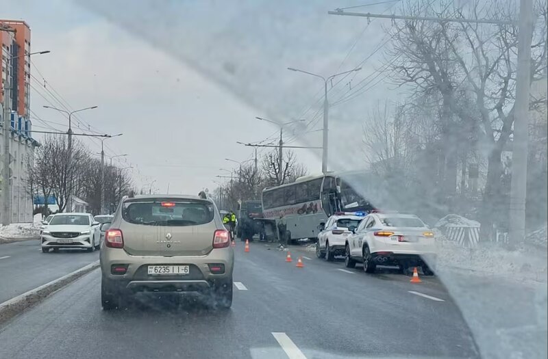В салоне находилось 28 человек. Никто из них не пострадал. Водителю оказана медицинская помощь. На месте происшествия работают сотрудники ГАИ, все обстоятельства выясняются.