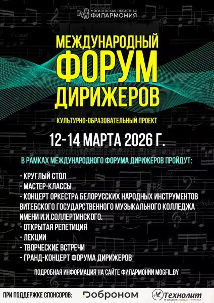 Форум дирижеров – площадка для встреч, открытого диалога и обмена опытом между ведущими дирижерами и музыкантами, работниками культуры и образования, учащимися и студентами учебных заведений в сфере культуры из Беларуси и России.