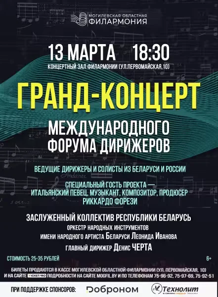 13 марта в 18.30 в концертном зале филармонии начнется Гранд-концерт форума. В программе – шедевры классической и современной музыки, которые исполнят дирижеры и солисты с заслуженным коллективом Республики Беларусь оркестром народных инструментов имени народного артиста Беларуси Л.Л. Иванова.