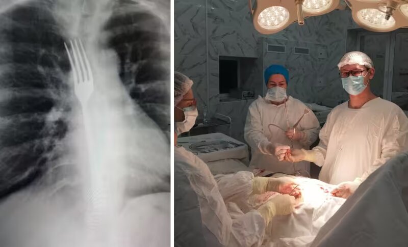 Отмечается, что благодаря профессионализму операционной бригады удалось избежать серьезных осложнений. Во время операции под наркозом вилку частично низвели в желудок, затем выполнили лапаротомию и гастростомию с извлечением инородного предмета. Хорошо, что не произошло вклинение вилки в пищевод, так как это потребовало бы крайне травматичной торакотомии.