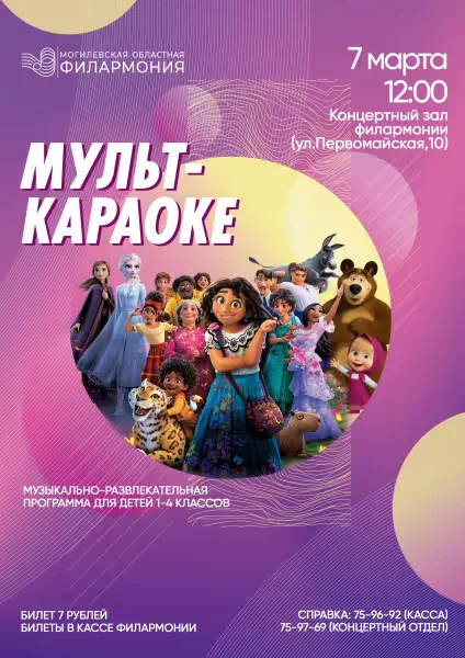 Музыкально-развлекательная программа «Мульт-караоке» – это не просто концерт, а веселый праздник, где каждый ребенок становится участником действия. Дети будут петь знакомые с детства песни и отгадывать мелодии.