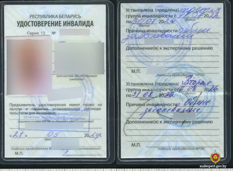 Бобруйские эксперты проверили удостоверение инвалида и установили, что запись о группе изменена.
