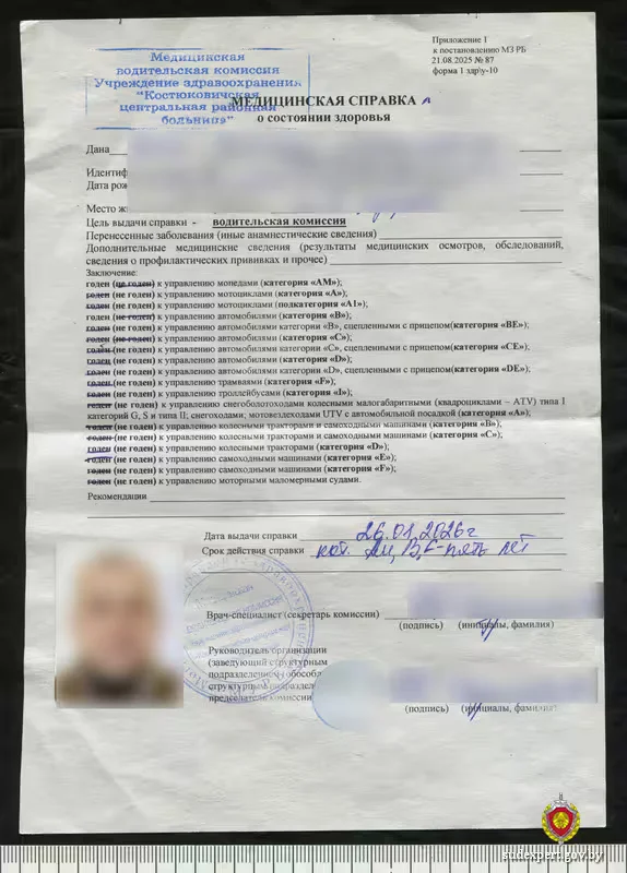 Правоохранители установили, что в январе 2026 года, пройдя водительскую медкомиссию для категорий АМ и В, он получил медицинскую справку, однако позже решил добавить себе годность к категории С и вписал в документ соответствующие «коррективы».