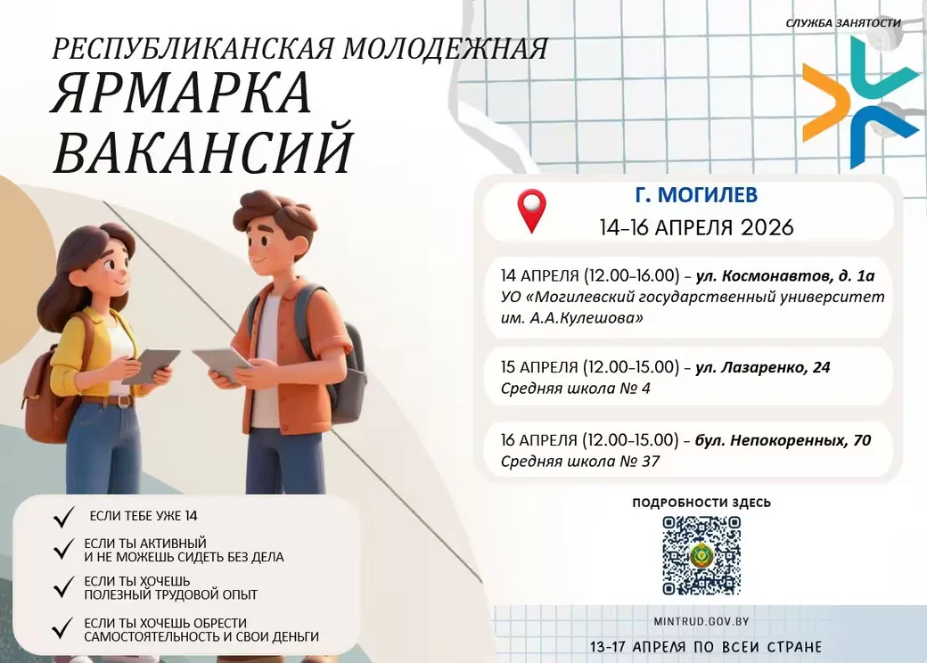 Как рассказали в управлении по труду, занятости и социальной защите горисполкома, для учащихся также будет организовано тематическое мероприятие о разъяснении законодательства, регулирующего занятость молодежи – «Семь шагов к трудоустройству». Молодежь также сможет протестировать себя с использованием сервиса «Шаг в профессию», который располагается на портале государственной службы занятости.