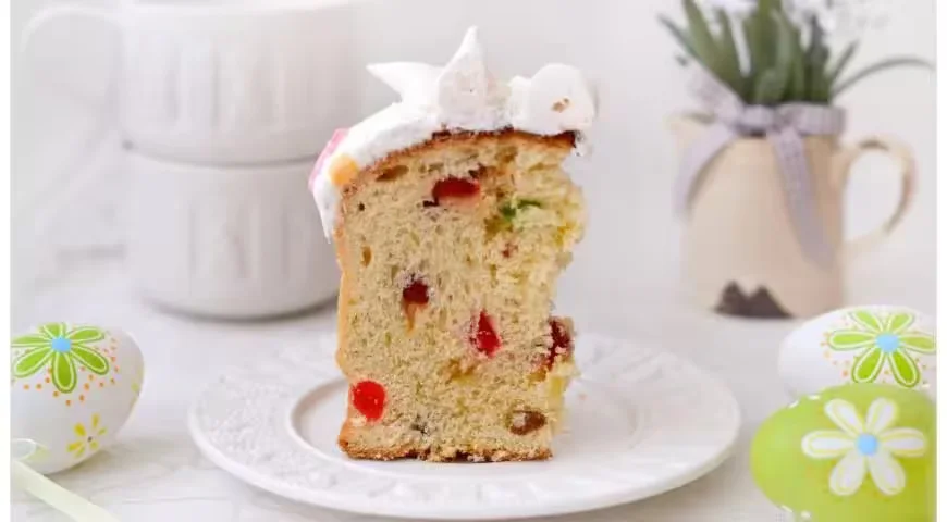 Кулич из теста на основе творога получается не менее вкусным, чем классический дрожжевой. Он с более мягкой и влажной структурой. Добавление чернослива в кулич делает его еще вкуснее.