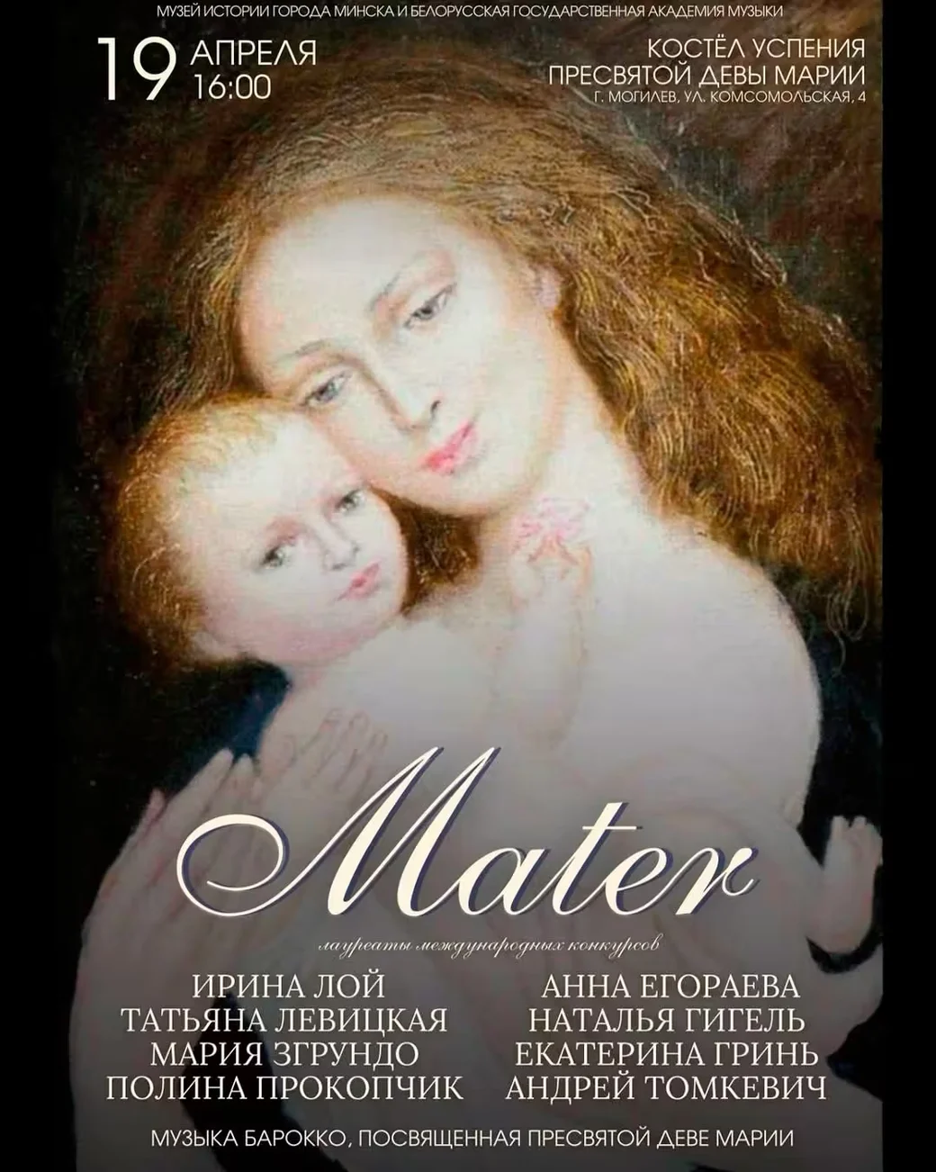 Пасхальные праздники наступили, и традиция концертов в костеле Могилева продолжается. В апреле прозвучит концерт, посвященный Пресвятой Деве Марии.