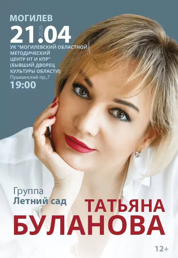 Исполнительница хитов «Не плачь», «Ясный мой свет», «Мой ненаглядный» и многих других приезжает в Могилев с группой «Летний сад». В программе также новые песни Татьяны Булановой.