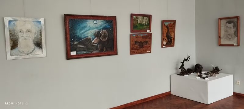 В экспозиции представлены картины и композиции из природных материалов. В сплетении корней, изгибах стволов автор видит образы живых существ, обитателей земли, воды и неба.
