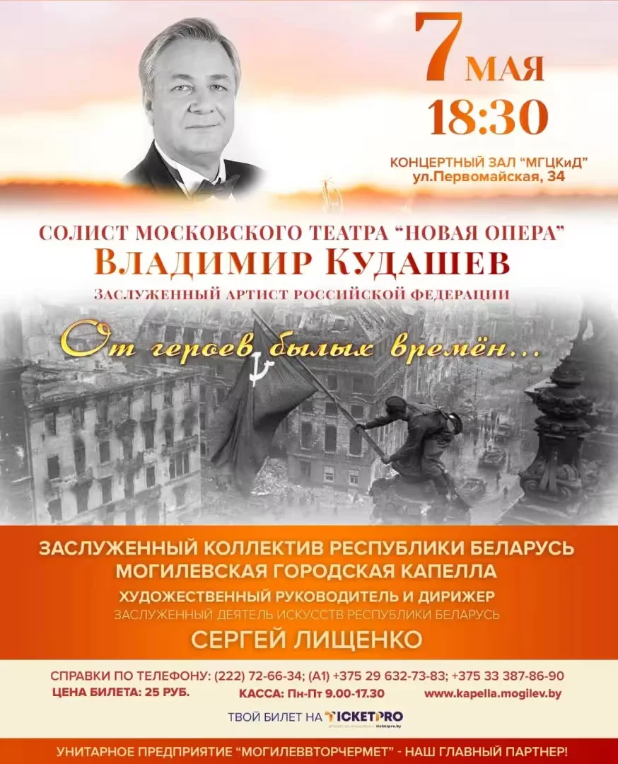 Концертная программа будет представлена 7 мая в концертном зале Могилевского городского центра культуры и досуга (ул. Первомайская, 34). Начало в 18.30. Цена билета – 25 руб. Справка по телефонам: 80222-72-66-34; +37529-632-73-83.