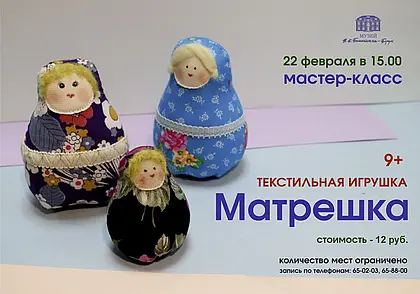 Мастер-класс по созданию текстильной игрушки состоится 22 февраля в музее Бялыницкого-Бирули Могилева
